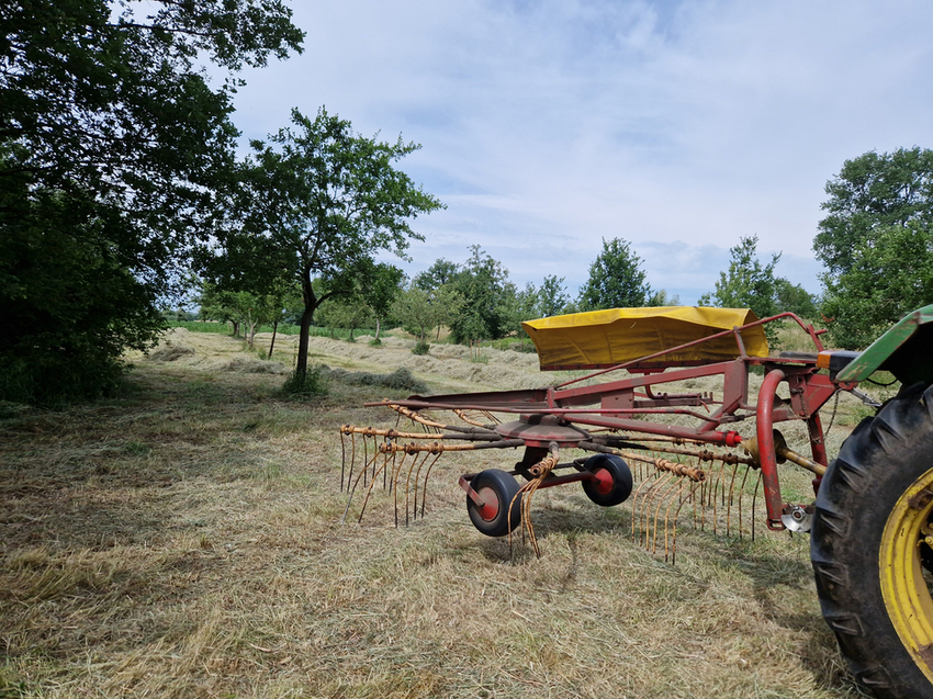 Der Verein hat vor längerer Zeit dort eine Blühwiese gesät. Die Blumen haben sich gut etabliert, damit aber die Nährstoffe aus dem Boden geholt werden können ist eine jährliche Mahd und die Abfuhr des Aufwuchses erforderlich.